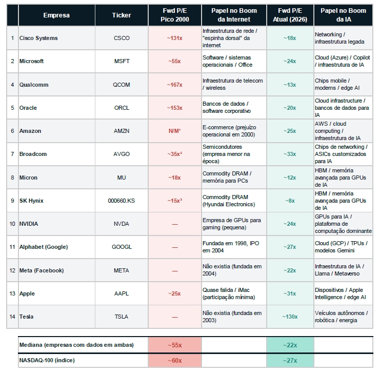 Valuations: Bolha da Internet (2000) vs. Era da IA (2026)